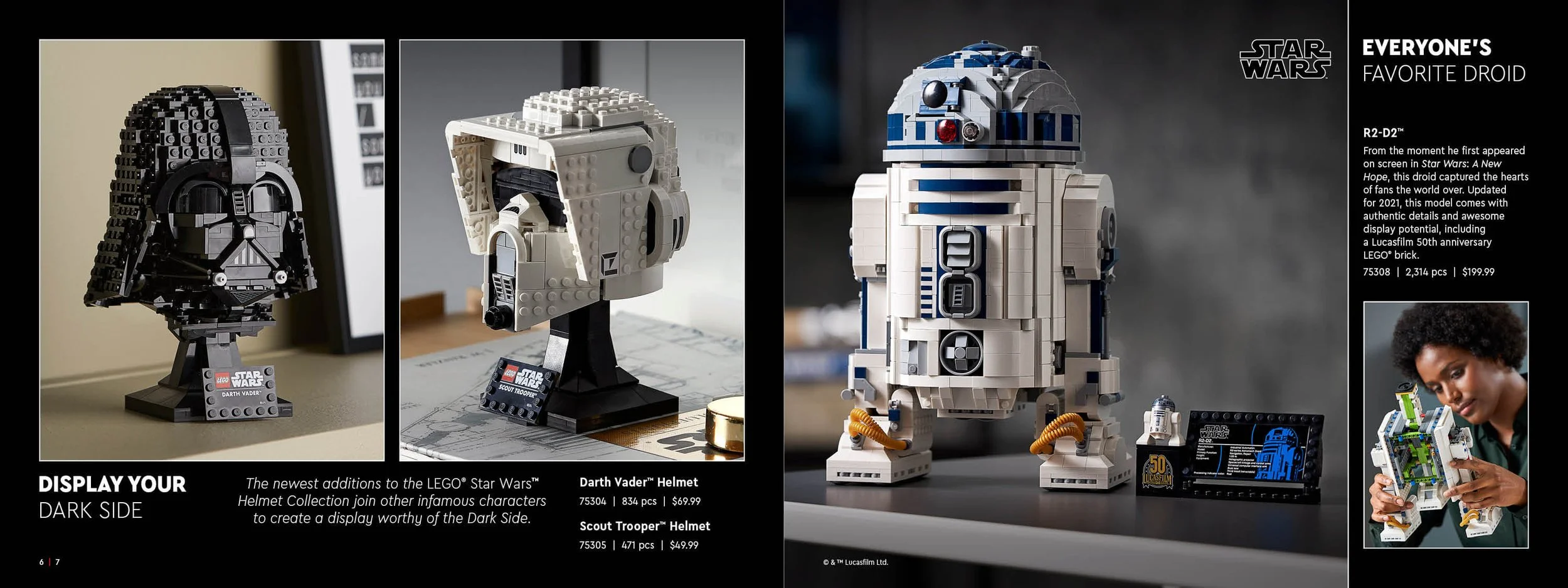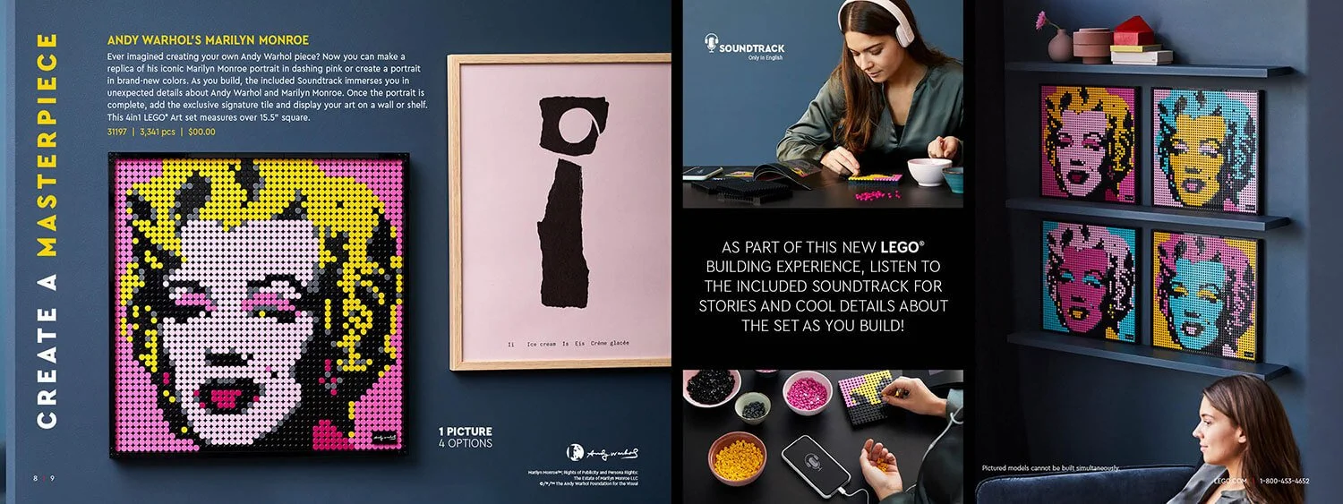The result is a sleek, contemporary catalog designed to feel mature and aspirational. Lifestyle photography highlights scale and context, showing how LEGO fits seamlessly into the home.