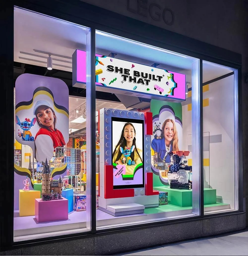 This campaign challenged the idea that “builders” are boys. Anchored by the message She Built That, each touch point put girls and their builds front and center. Clear, playful, and unapologetic, the campaign made creativity feel powerful the moment you entered the space.
