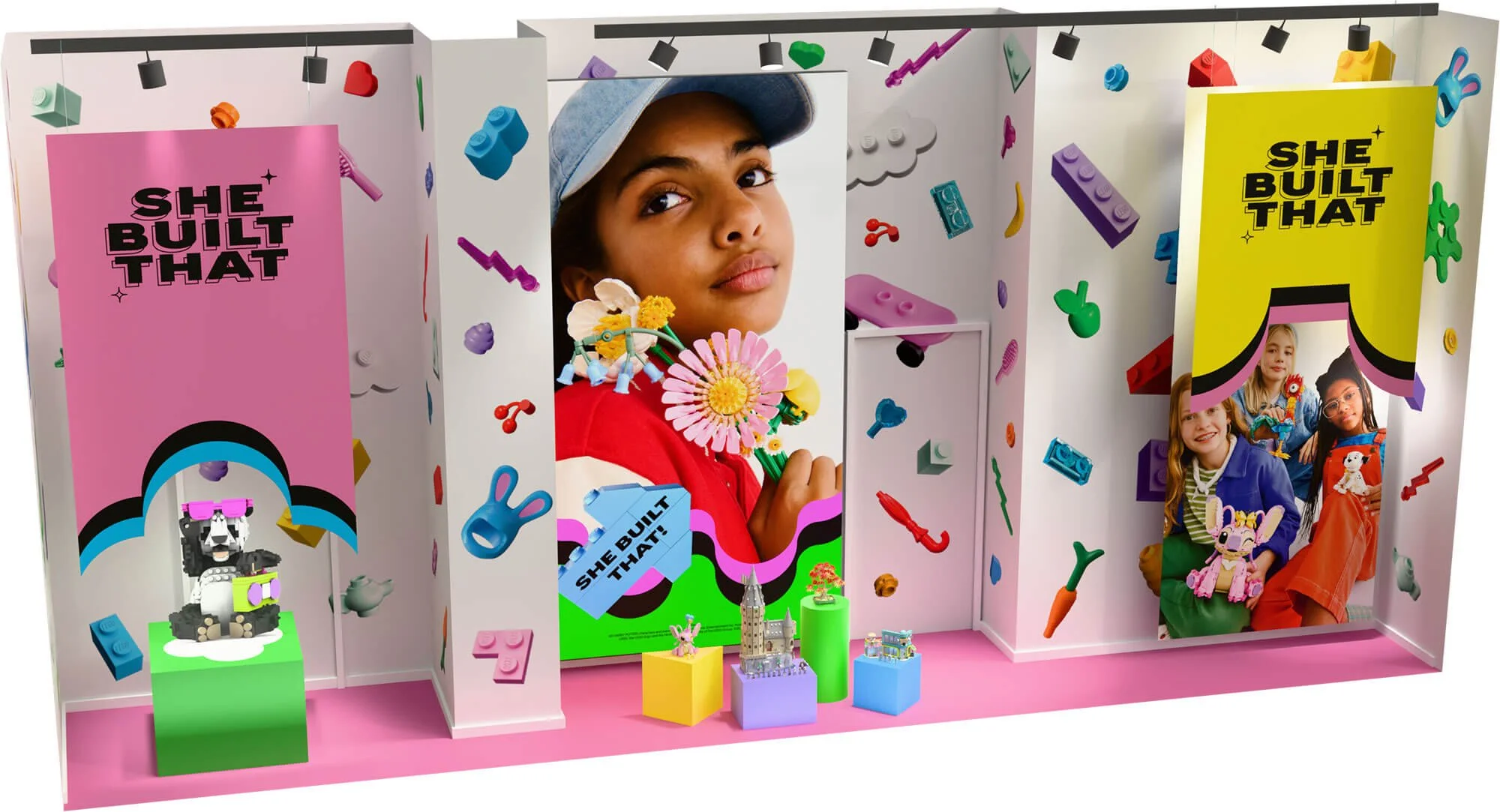 A bold campaign challenging the assumption that “builders” are boys, with “She Built That” as its core message. These are a selection of the in-store touch points I designed to inspire creativity through striking displays and windows.
