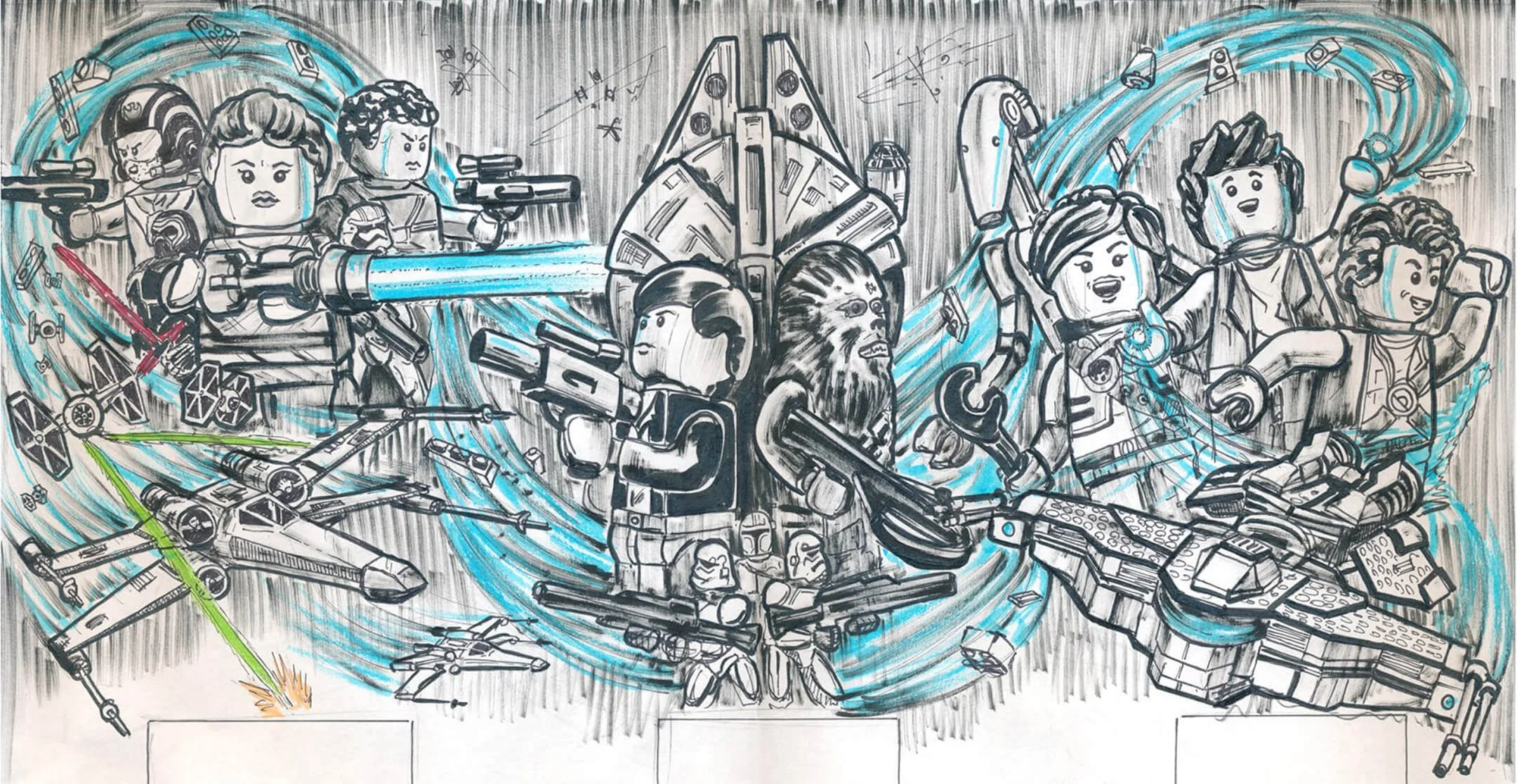 To connect the different scales—from mini builds to large figures—we used the “Force” swirl from the Master Your Force campaign to guide the viewer’s eye. I led the overall composition, created effects, and directed 3D model placement—starting with concept sketches and overseeing the final render.