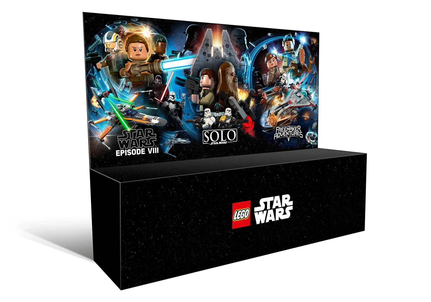 This podium display used to showcase our product portfolio to LEGO leadership. The art panel measures 55" x 116". The goal was to unite three Star Wars™ product lines into one cohesive visual.