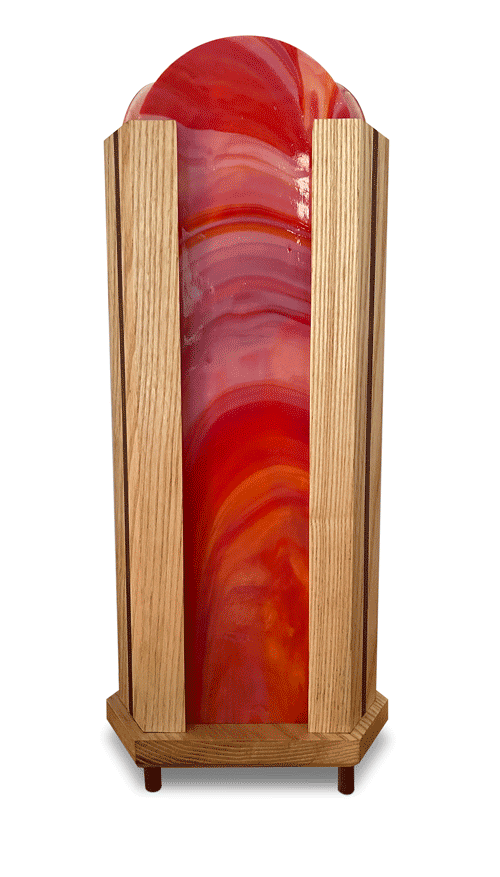 Each piece is designed to highlight the natural beauty of the wood while complementing it with the vibrant colors of the glass. When illuminated, the lamp adds a splash of color that transforms the room, creating an inviting atmosphere and setting the perfect mood.