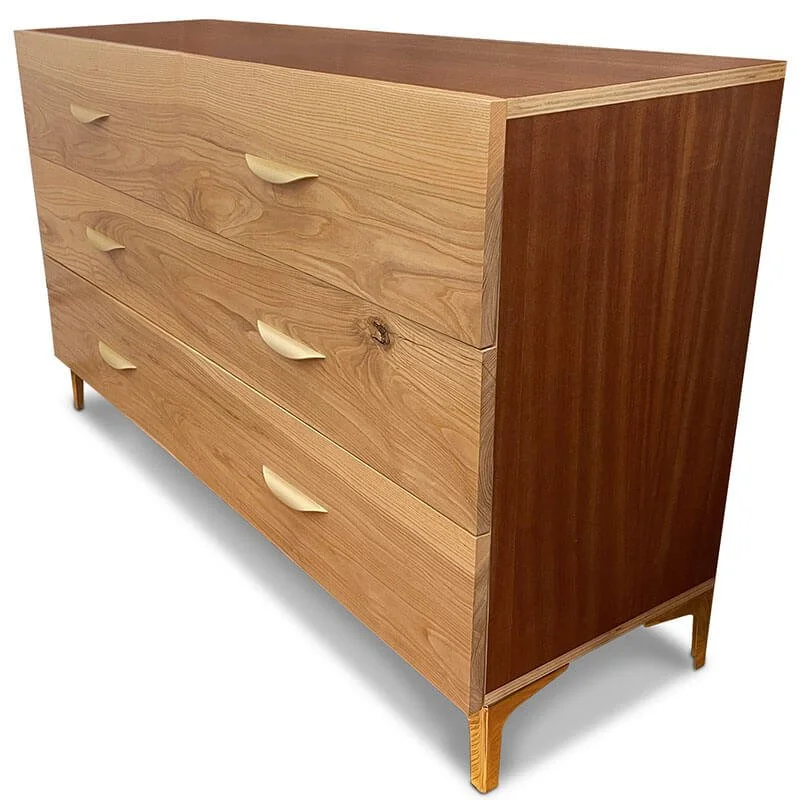 This handcrafted piece made from white oak, merges organic modern design with thoughtful, functional details.