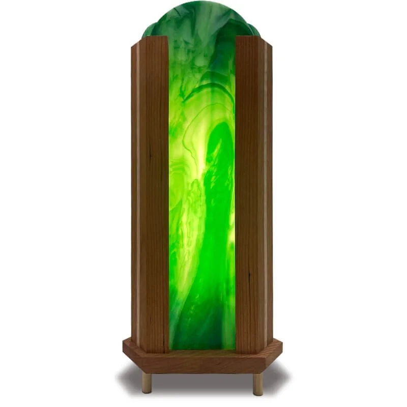 Using carefully selected hardwoods and vibrant stained glass, these lamps are both sculptural and functional.